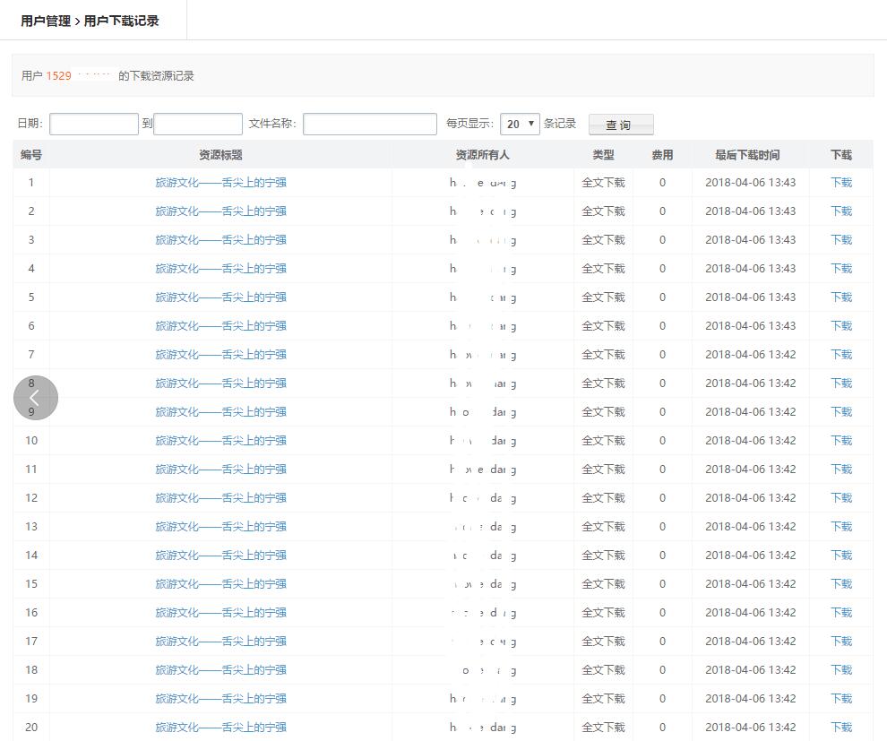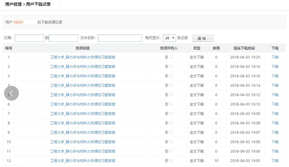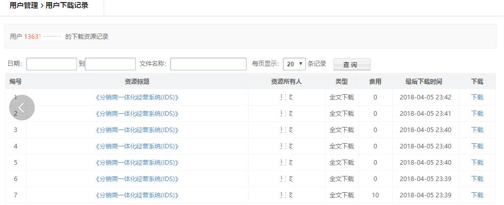 下载客服碰到的常见下载失败后,其会员的下载记录截图