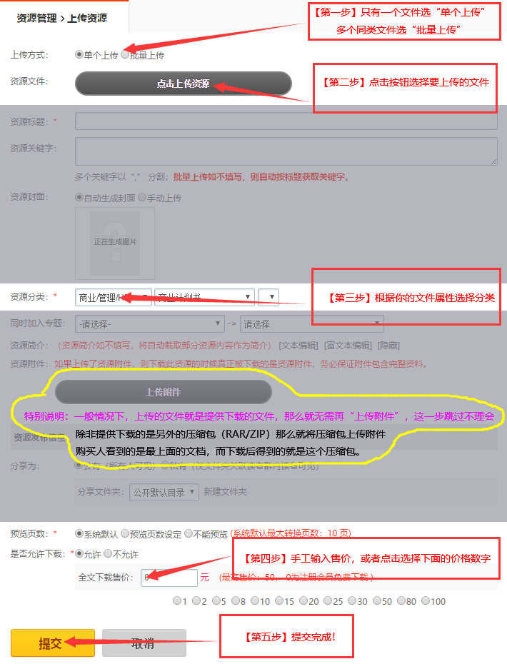 1、一定要根据自己的文件属性选择相应的分类,否则不利于seo收录和检索,白白浪费力气上传。