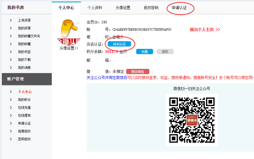 个人认证流程:会员登录后选择“个人中心”,在右侧点击“尚未认证”或者“申请认证”,即可打开认证表单(个人认证除按要求上传相应的认证图片材料)