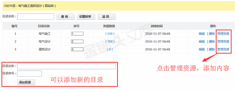 第三步:进行“管理目录”后,能看到以下界面,你可以添加新的目录或者往已添加的目录中添加文档资源。