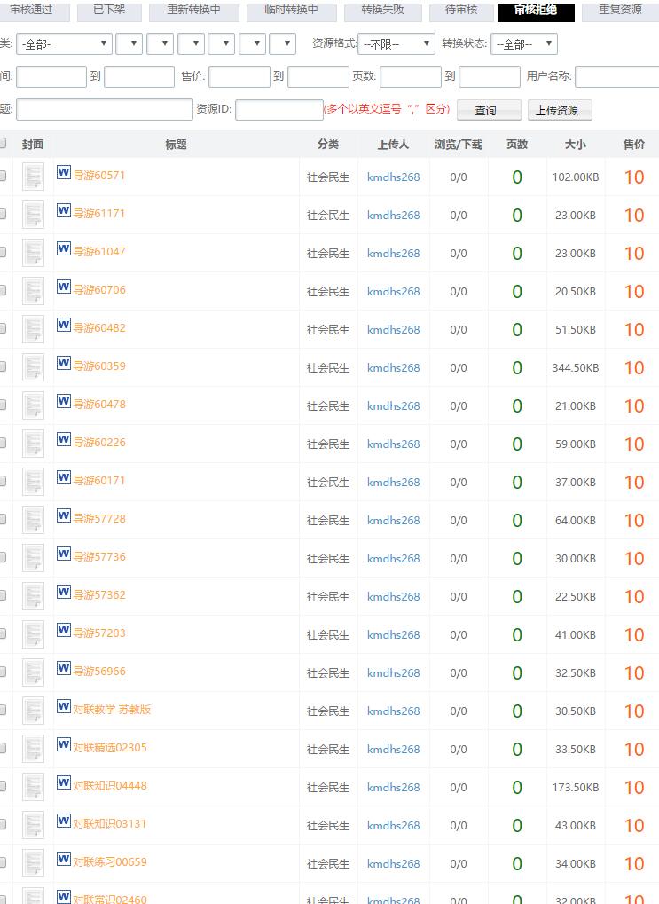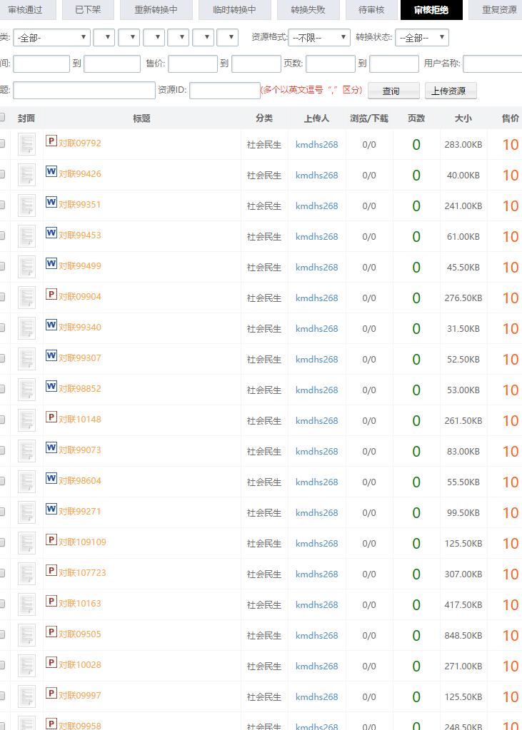 会员“kmdhs268”,id号为26045,违规发布垃圾文档,且因发布其它内容标题过短,用数据填充,垃圾文档占已发布所有文档比重很大,无检索价值,同时占用了大家的网络、转换队列以及存储资源;