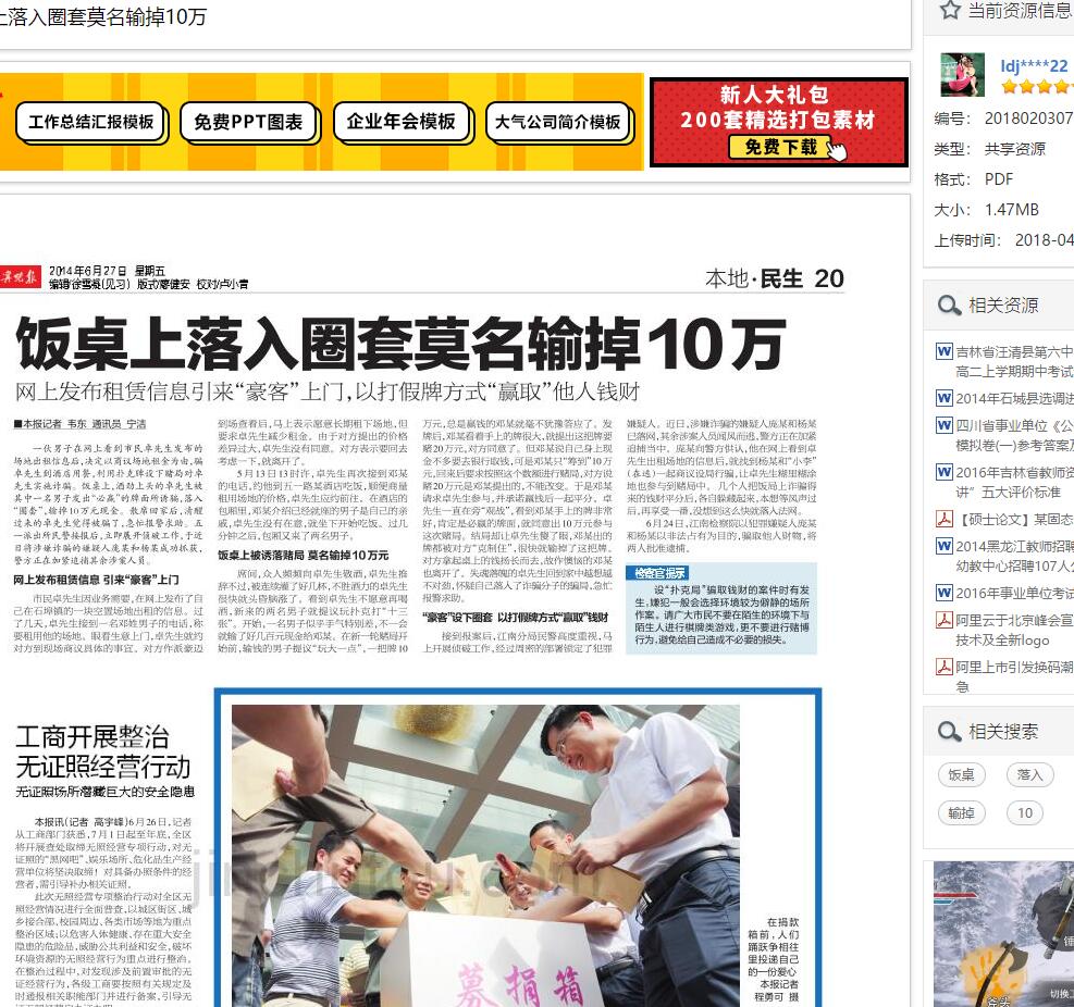 经本网鉴定,该会员所发布的内容主要有未经授权的报刊和杂志作品存在一定的法律风险且没有商业价值,以及大量章节不全等垃圾文档;现依据《违禁作品内容处理规则》第一条第8项“破坏知识产权。如:未经授权散发受凯时尊龙官网的版权保护的产品,如软件,音乐作品等。”;第三条“低危信息内容的处理”办法,以及《金锄头网会员注册协议》的若干条款,对该会员由认证会员直接处理为“违禁会员”,永久封禁(冻结)帐号处理,金锄头有权将用户所有收益和保证金作为违约金扣除,并对所有文档进行相关处理,金锄头网保留处理该会员文档和账号的所有权力;帐号封禁经网站公示后,不再做任何形式的通知。。